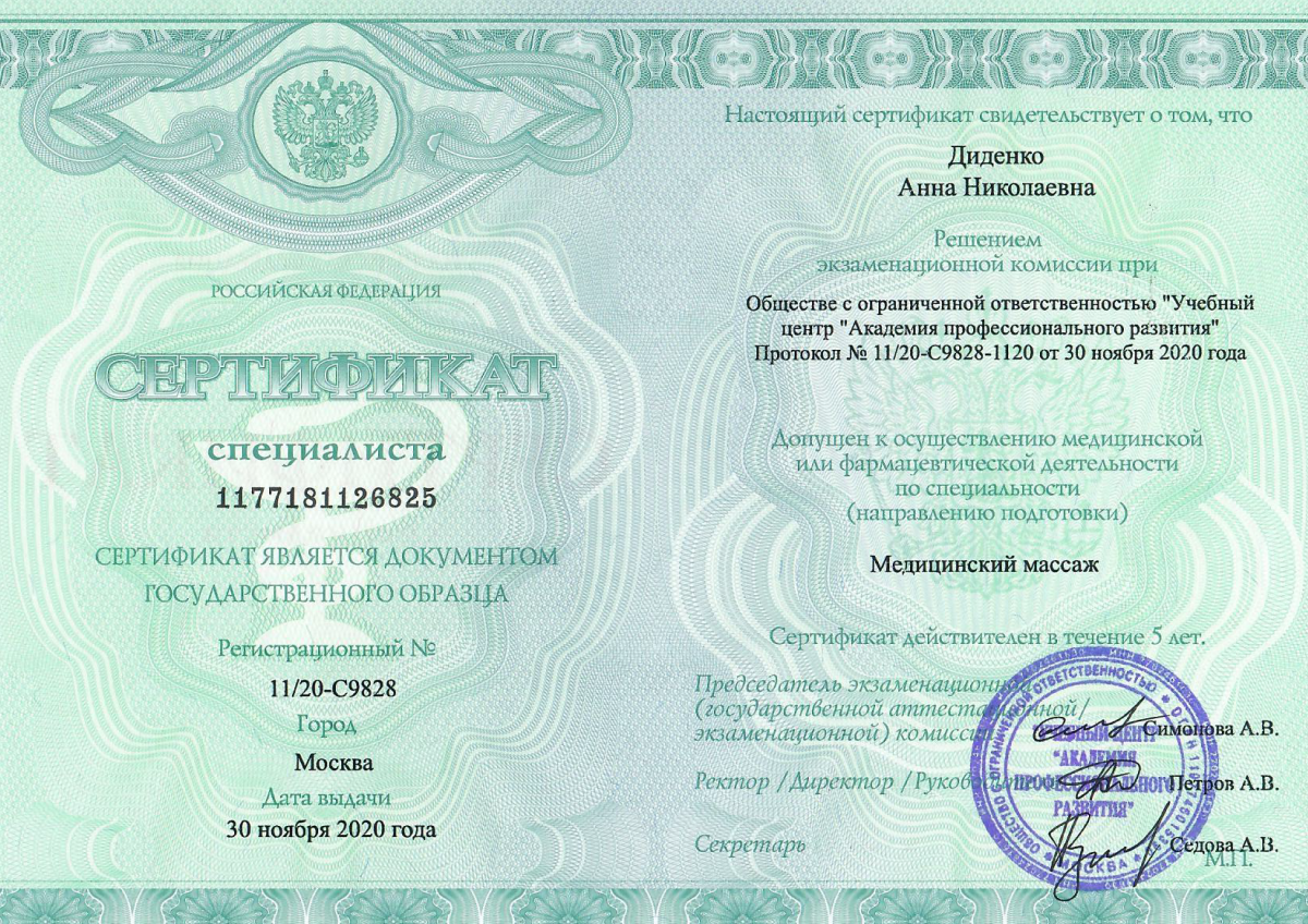 Доверьте здоровье опорно-двигательного аппарата профессионалу! Анна Николаевна Диденко поможет вам вернуться к полноценной жизни, запишитесь на консультацию в нашей клинике и убедитесь в этом сами.