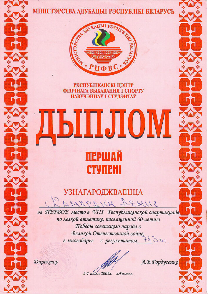 Денис Григорьевич — настоящий профессионал с уникальным сочетанием медицинских знаний, спортивного опыта и индивидуального подхода к каждому пациенту. Работает в концепции Маллиган, Маккензи, Neurac, Майерса. Владеет техниками глубокотканного массажа и лимфодренажа. Его карьера началась с выдающихся достижений в спорте: он входил в национальную сборную по лёгкой атлетике в дисциплине десятиборье, становился двукратным чемпионом СНГ, многократным чемпионом и призёром страны, а также кандидатом в мастера спорта по восьми видам лёгкой атлетики. Кроме того, Денис Григорьевич — кандидат в мастера спорта по баскетболу и призёр соревнований по армейскому боевому самбо среди спецподразделений. Этот богатый спортивный опыт позволяет ему понимать, как работает тело под нагрузкой, и применять эти знания в реабилитации.