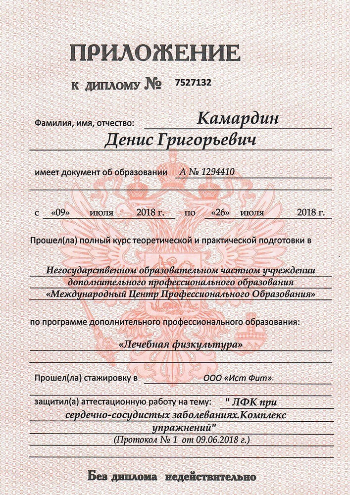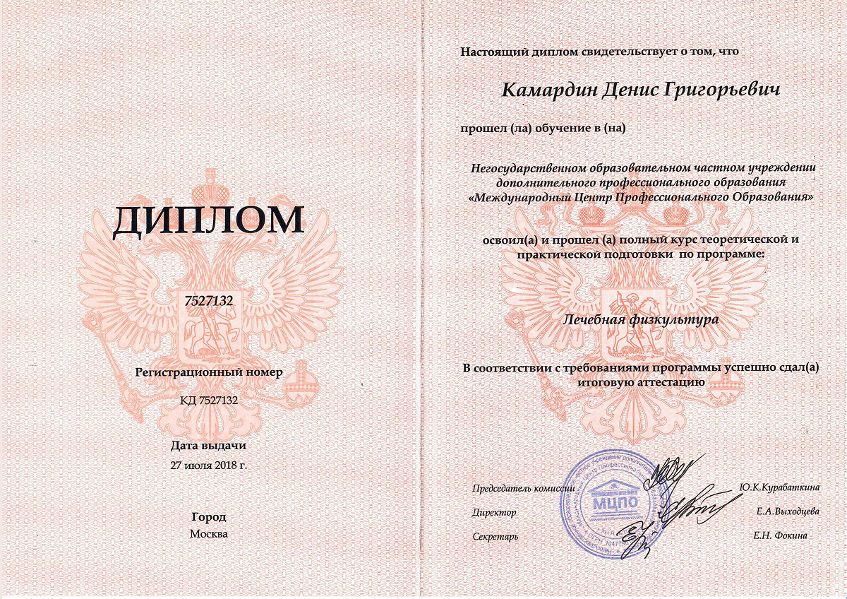 Мы гордимся тем, что работаем с высококвалифицированными специалистами, которые помогают нашим пациентам возвращаться к активной и здоровой жизни. Один из таких профессионалов — Денис Григорьевич Камардин, инструктор по лечебной физкультуре и специалист в области реабилитации, чей опыт и знания станут вашим надёжным проводником на пути к восстановлению и улучшению физической формы.